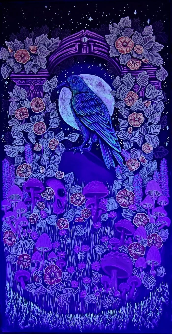 18.5×40”, Acrylic with UV reactive paint. $850
