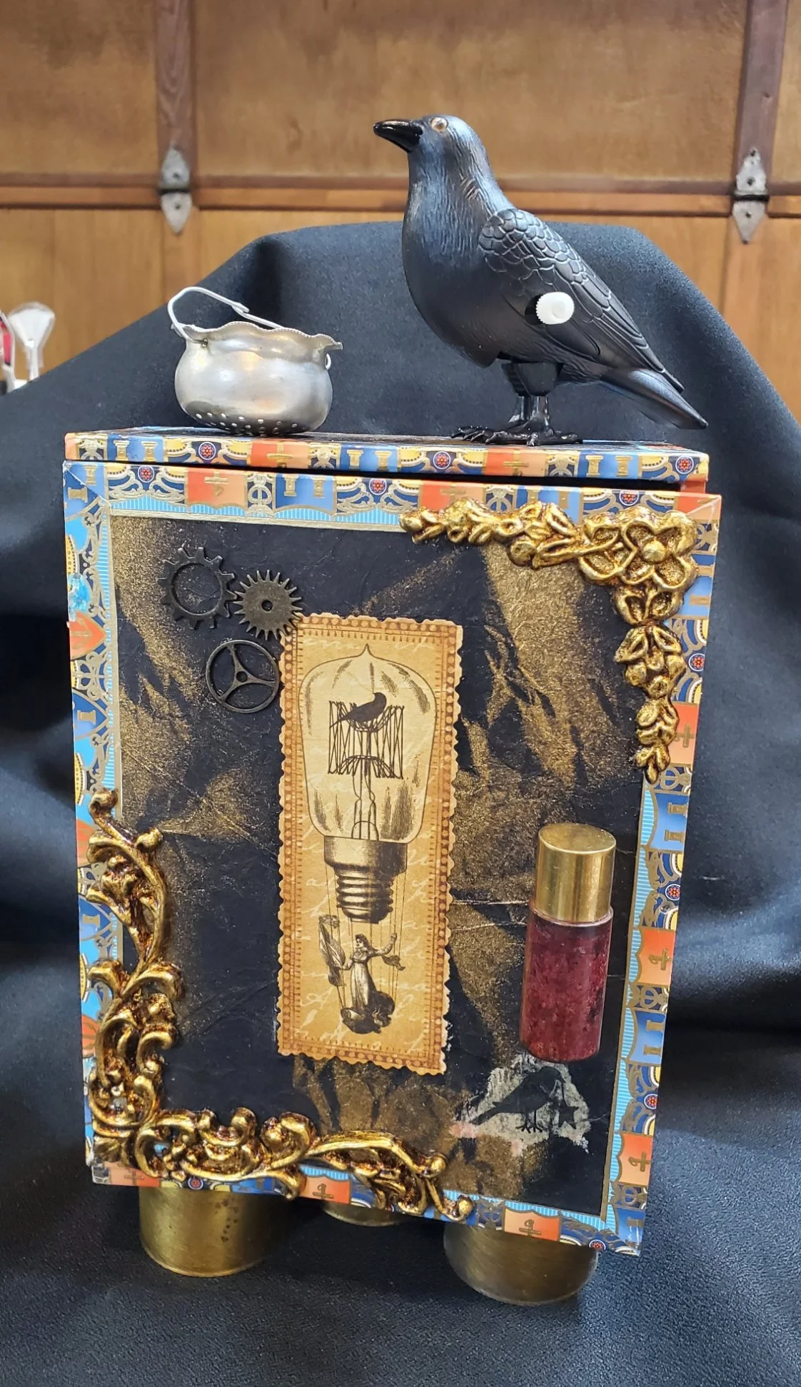 12×3.25×7”, 3D mixed media & cuckoo clock. $195